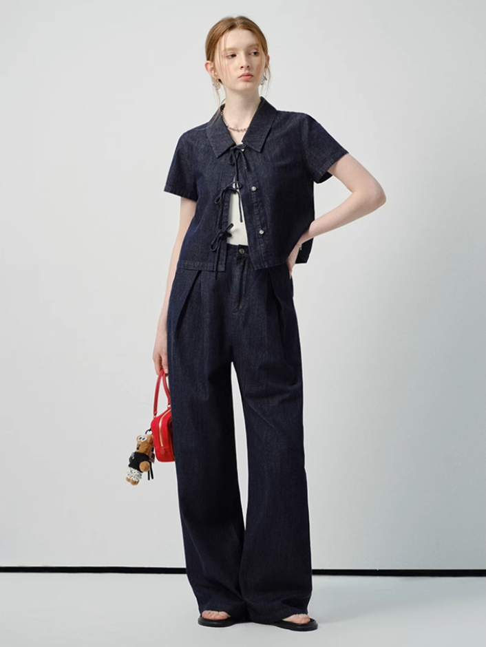 ビッグポケットデザインハイウエストワイドレッグショーツ