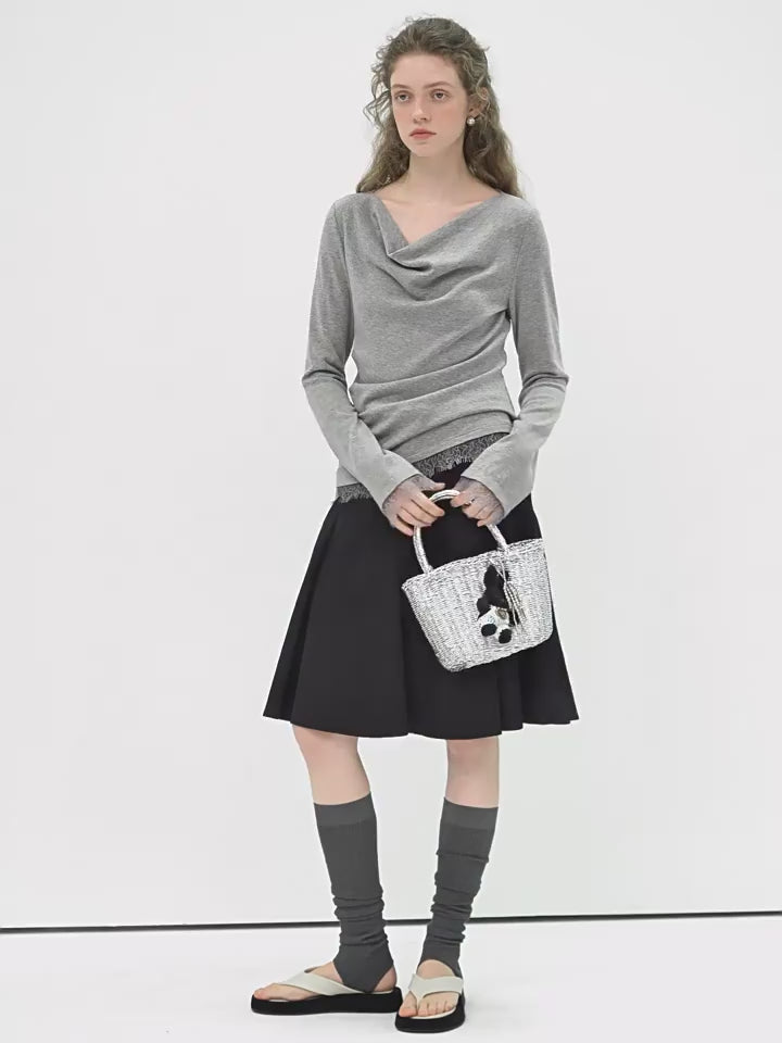 ドレープネックレースコンビ ニットロングスリーブ