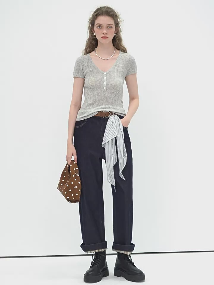 ハイウエストロールアップデニム